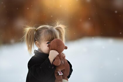 Güzel, küçük bir kız yumuşak bir iğne tutuyor