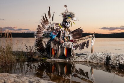 Göl kıyısındaki Kızılderili şamanı
