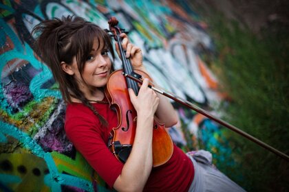Kemanlı kız. Müzisyen. Güzel gülümseme