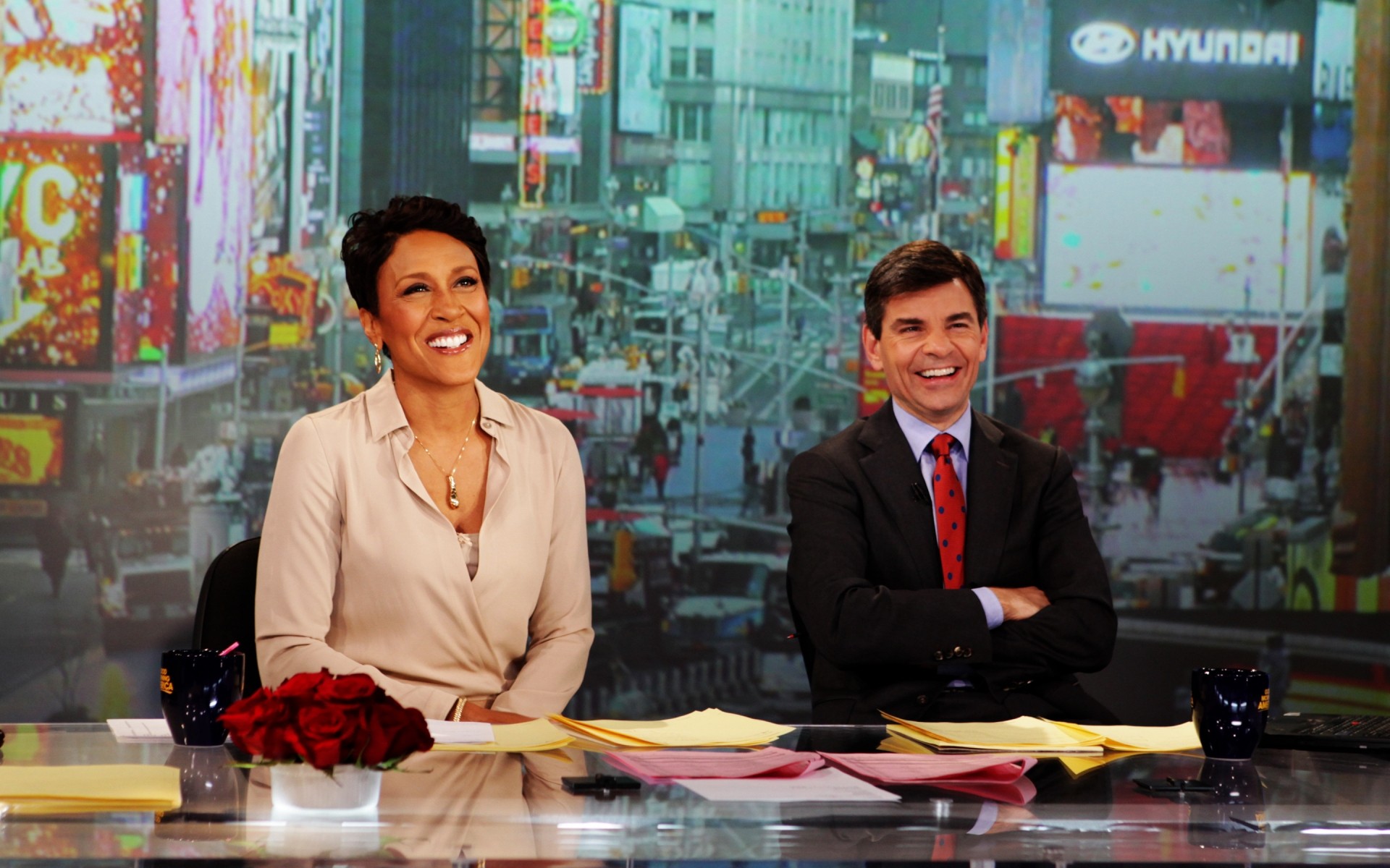 Haber sunucuları sevimli bir şekilde gülüyor - telefona duvar kağıdı