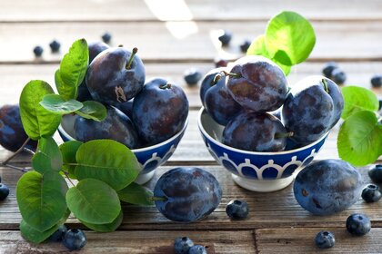 Masanın üzerindeki kaselerde olgun erikler