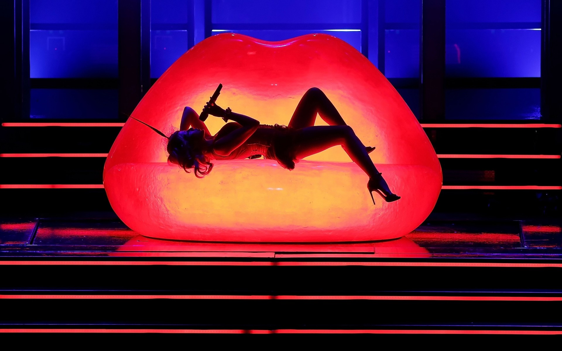 Seksi şarkıcı sahnede şarkısını söylüyor - telefona duvar kağıdı