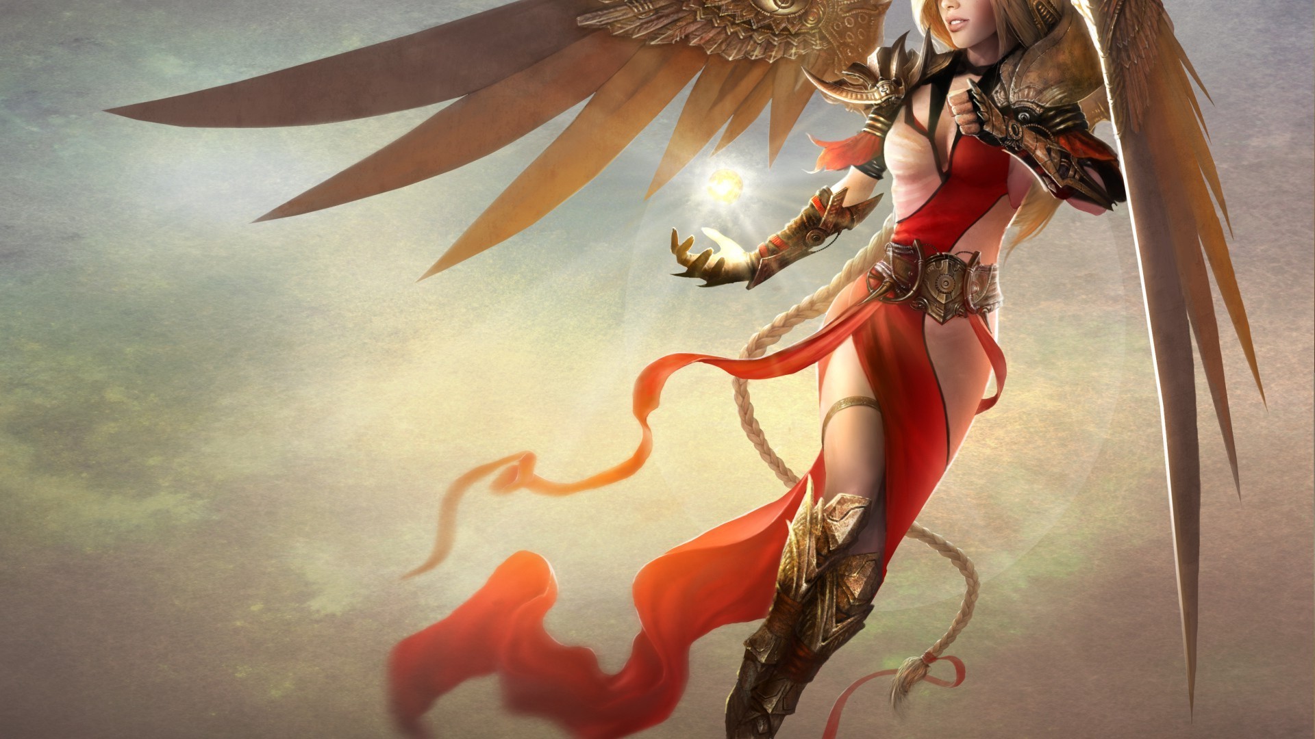 Kanatlı kız ve avuçlarında parlayan bir top - Masaüstü duvar kağıdı