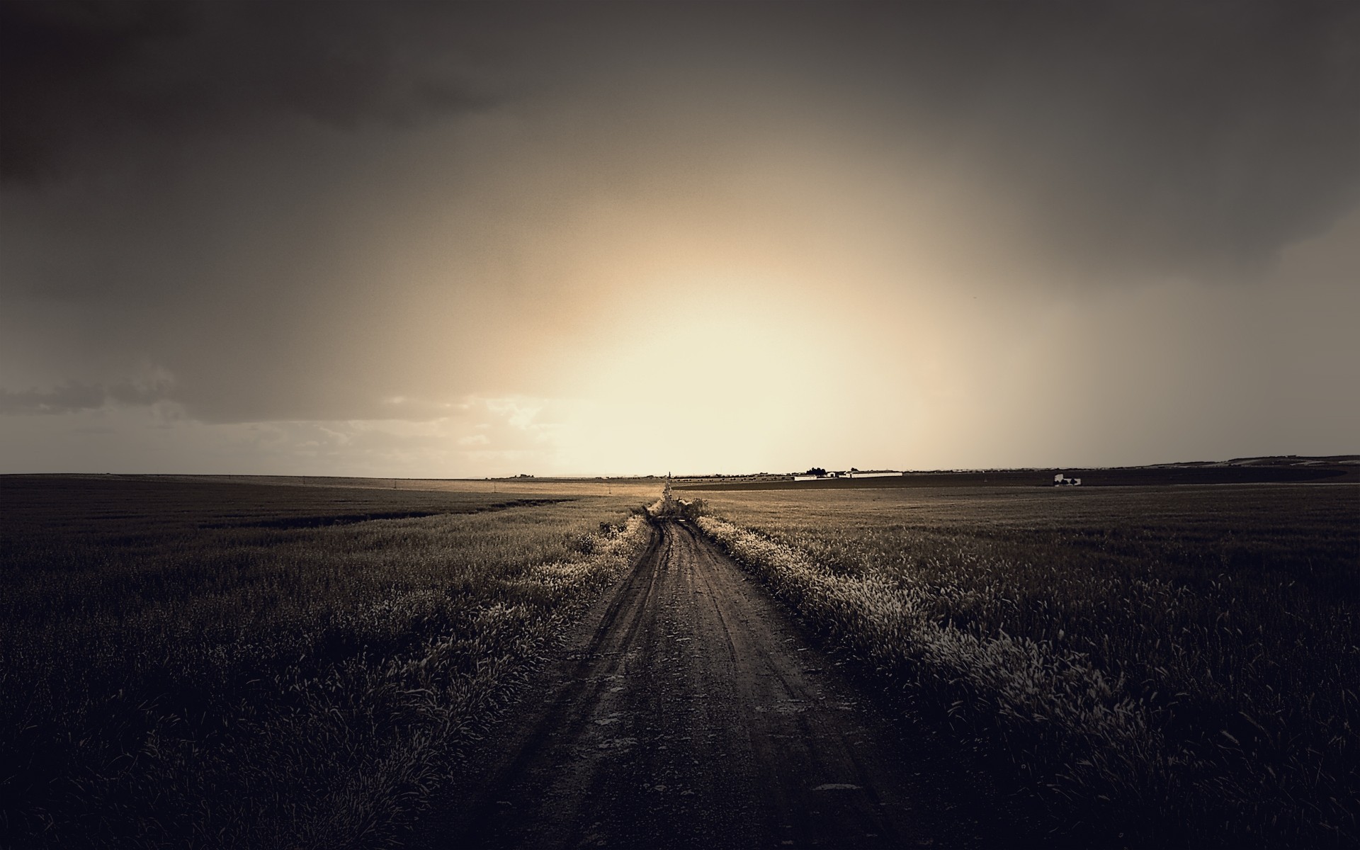 Uzaktaki sisli yolun ortasında gün batımı - telefona duvar kağıdı