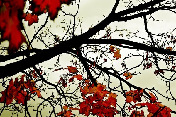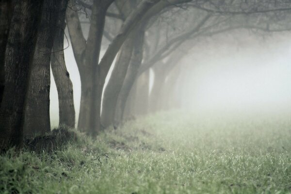 Sonbaharda ağaçların arka planına karşı sisli manzara
