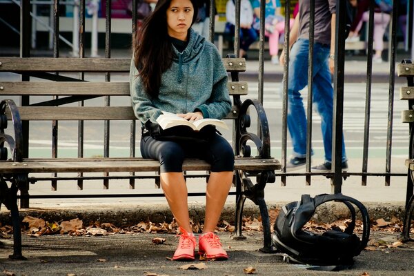 Ormanda turuncu yapraklardan yapılmış bir halıda parlak bir elbiseli bir kız