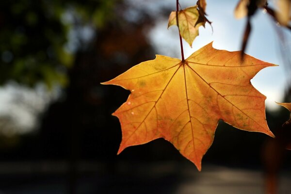 Bulanık bir arka plan üzerinde akçaağaç yaprağı