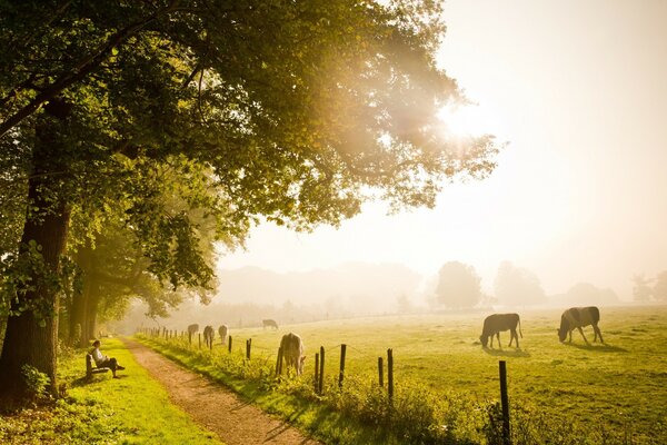 Bulutların arasından güneşin ışınları yolu aydınlatıyor