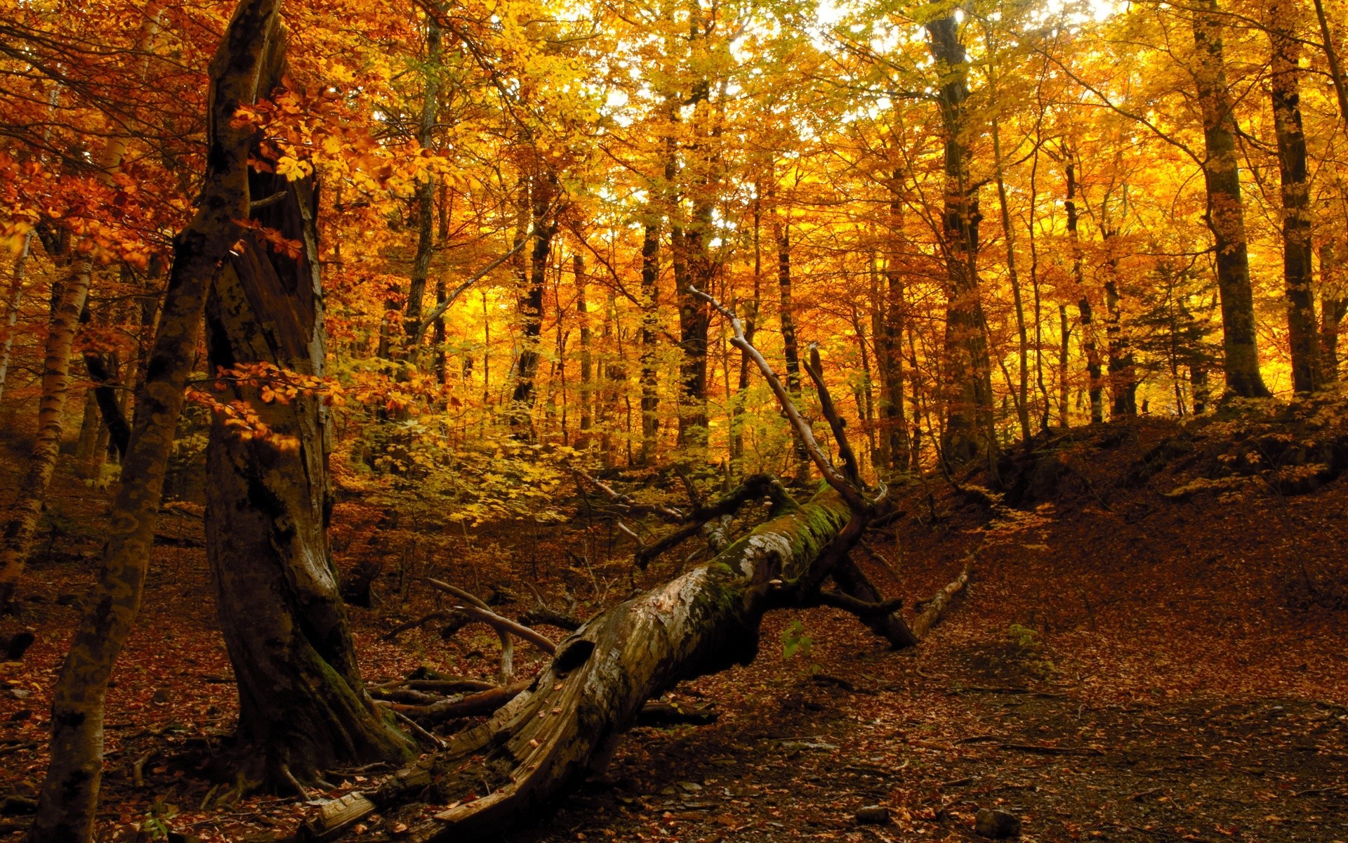 Sonbahar ormanı. sonbaharda ağaçlarda sarı yapraklarSonbahar ormanı. Sonbaharda ağaçlarda sarı yapraklar