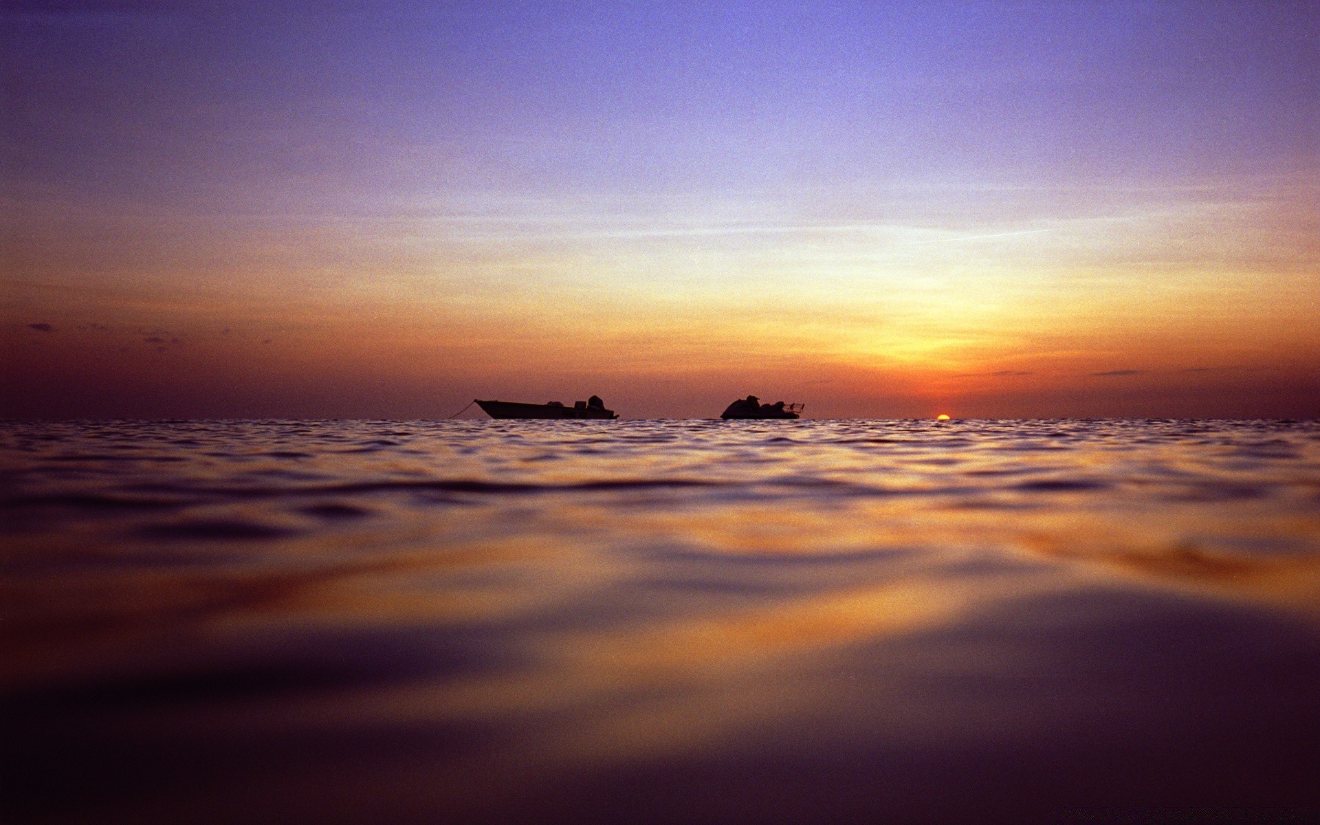Kumlu sahilde deniz köpüğü ve gün batımı
