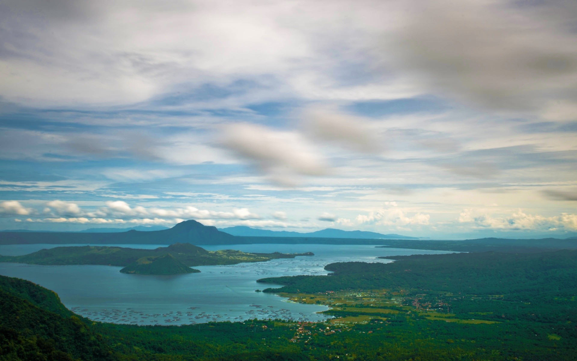 Yaz akşamı mavi gölün üzerindeki bulutlar