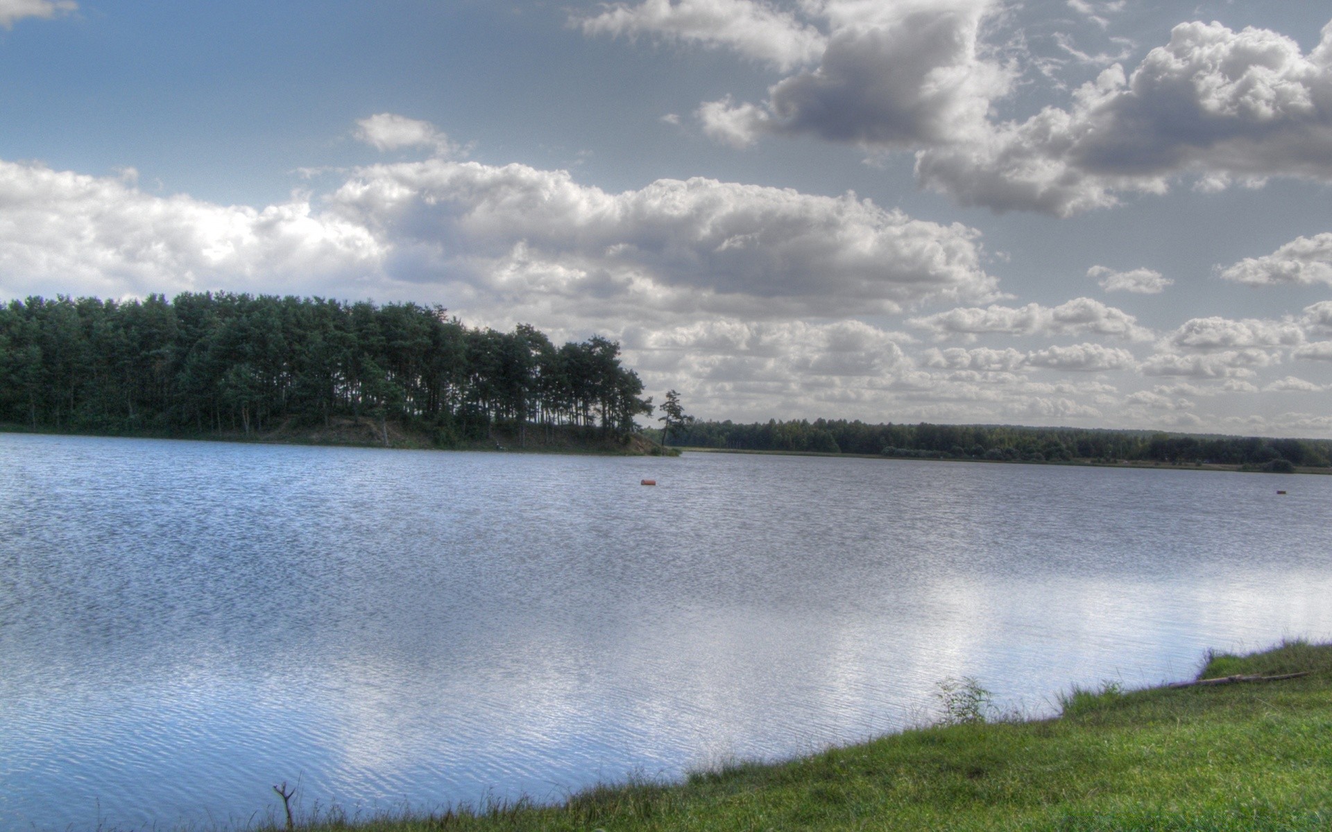Gölün ve gri ormanın yüzeyi