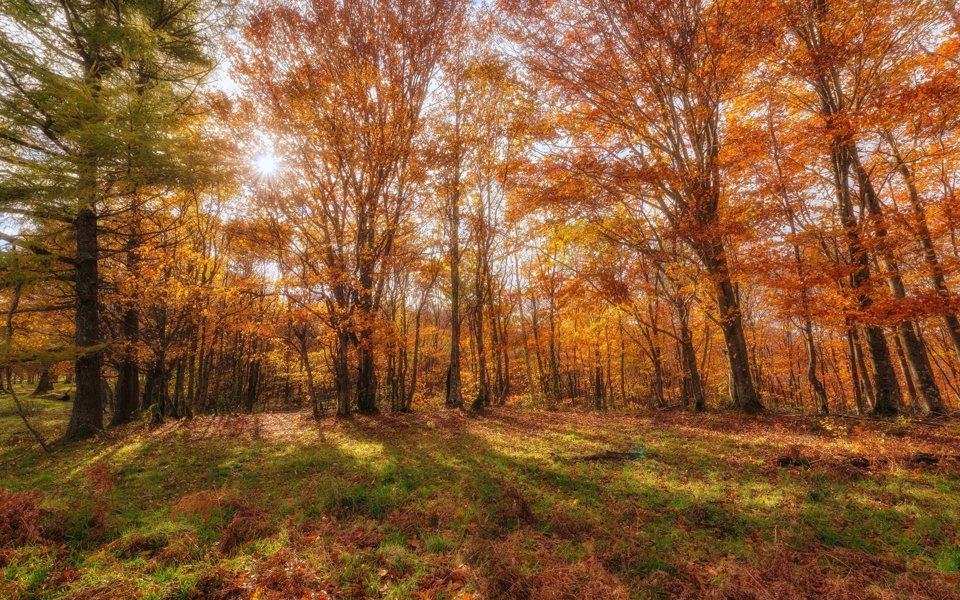 Sonbahar manzarası orman ve güneş