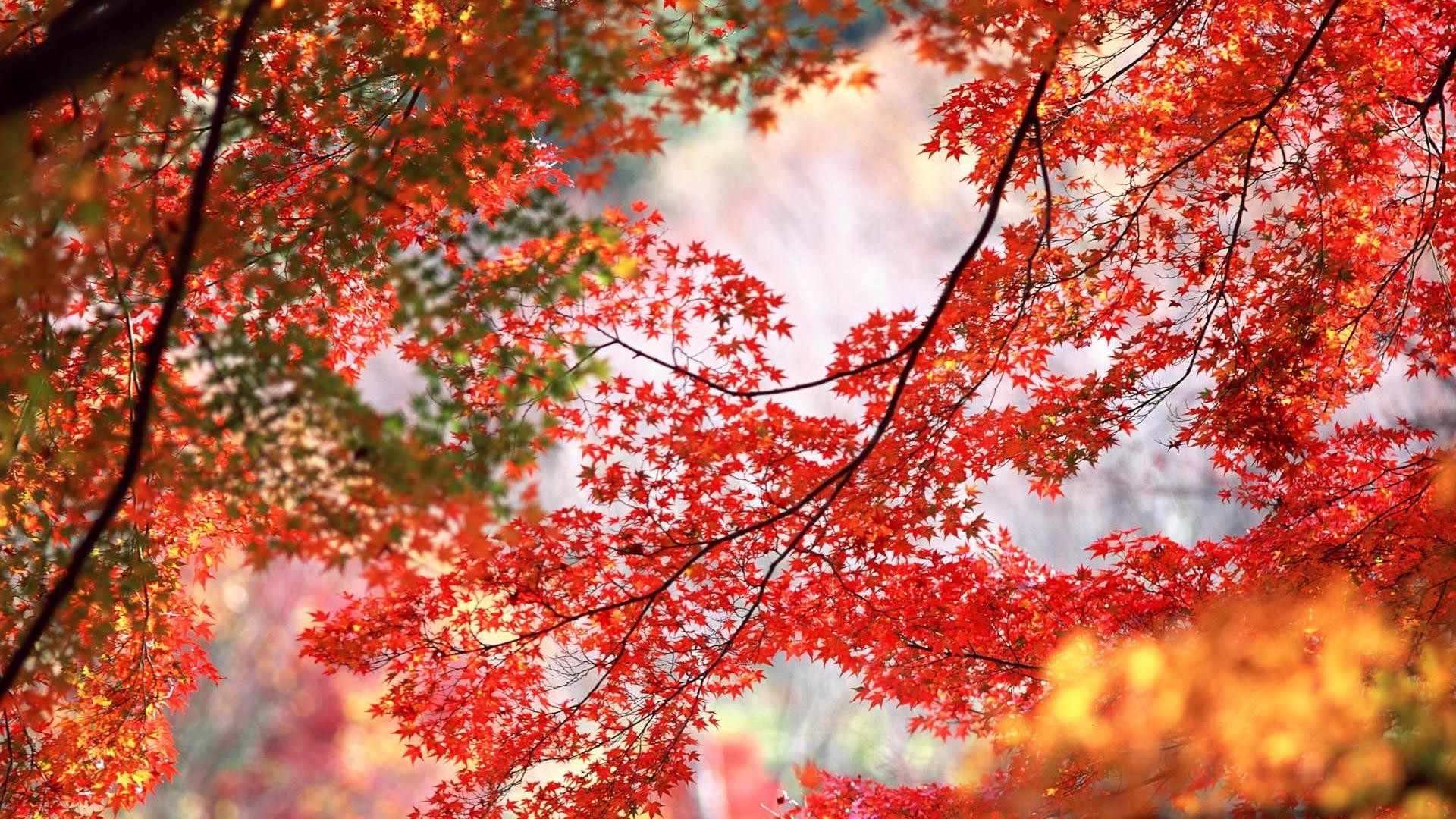 Sonbahar yapraklarının merceğinden güneş ışığı