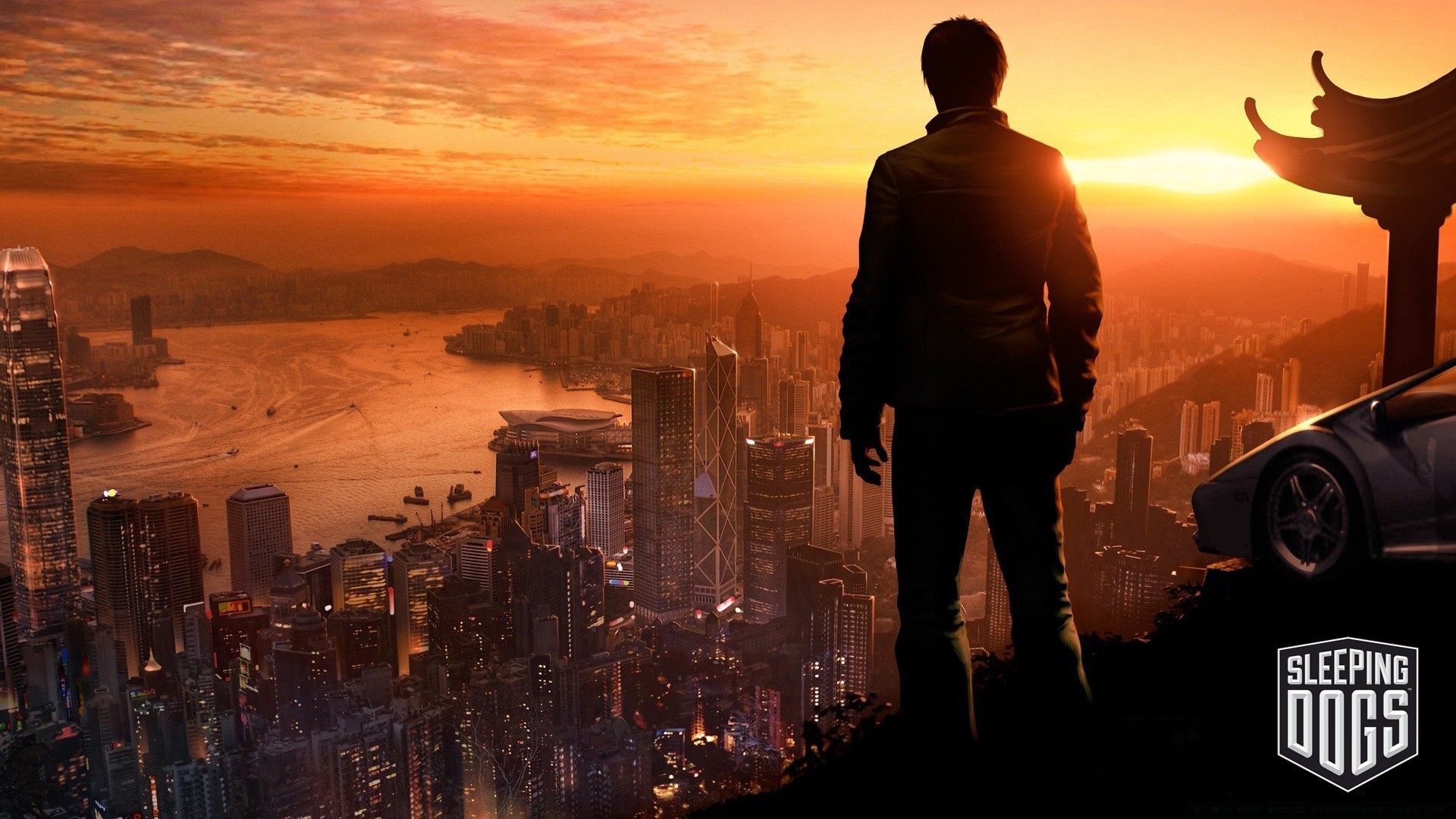 Adam şehirde gün batımına bakıyor