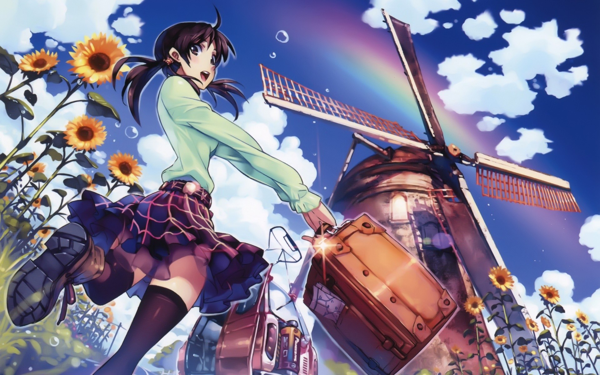 Masaüstü için sarı bir arka plan üzerinde anime kız çizimi
