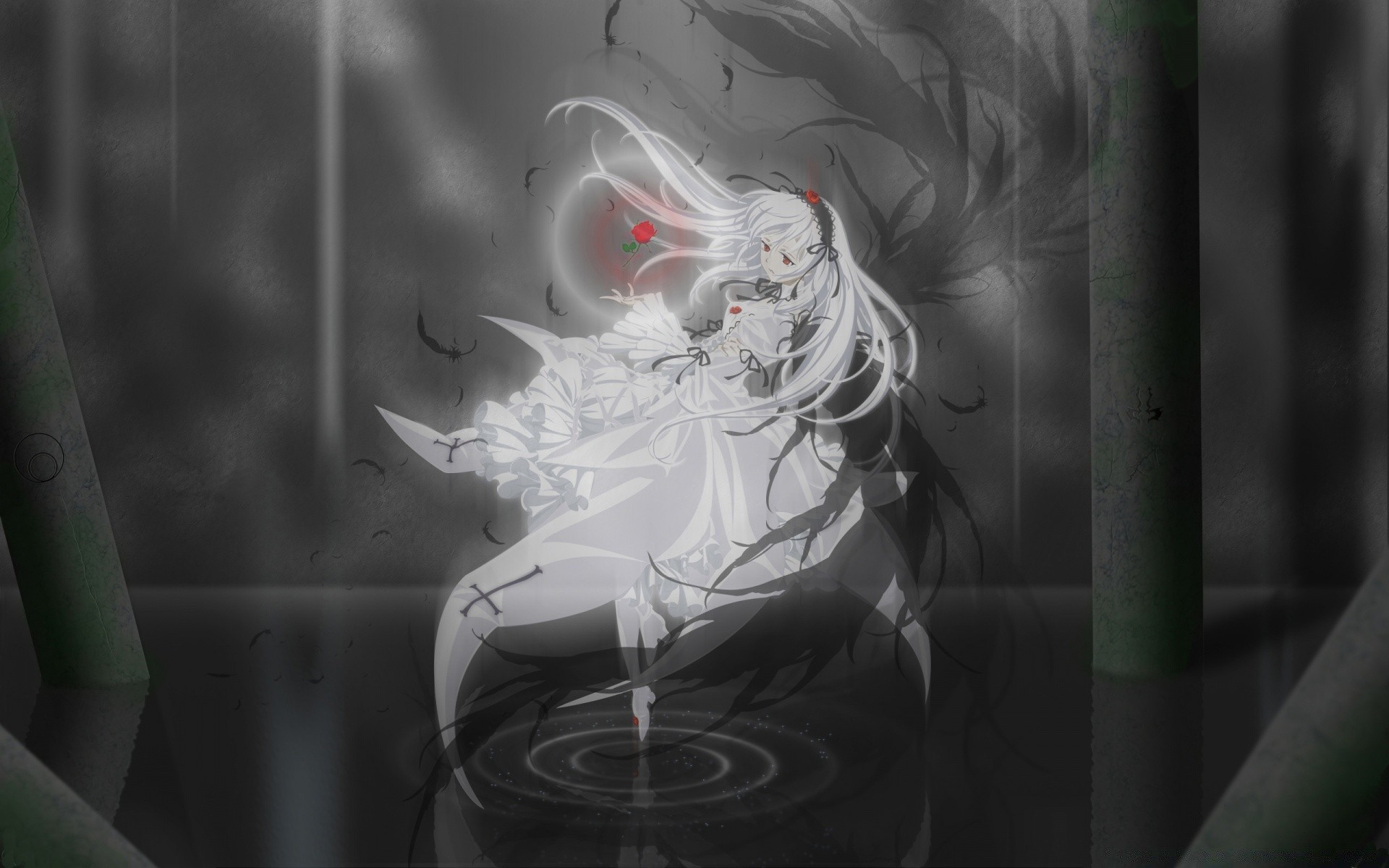 Siyah kanatlı anime kızı aşağı iniyor