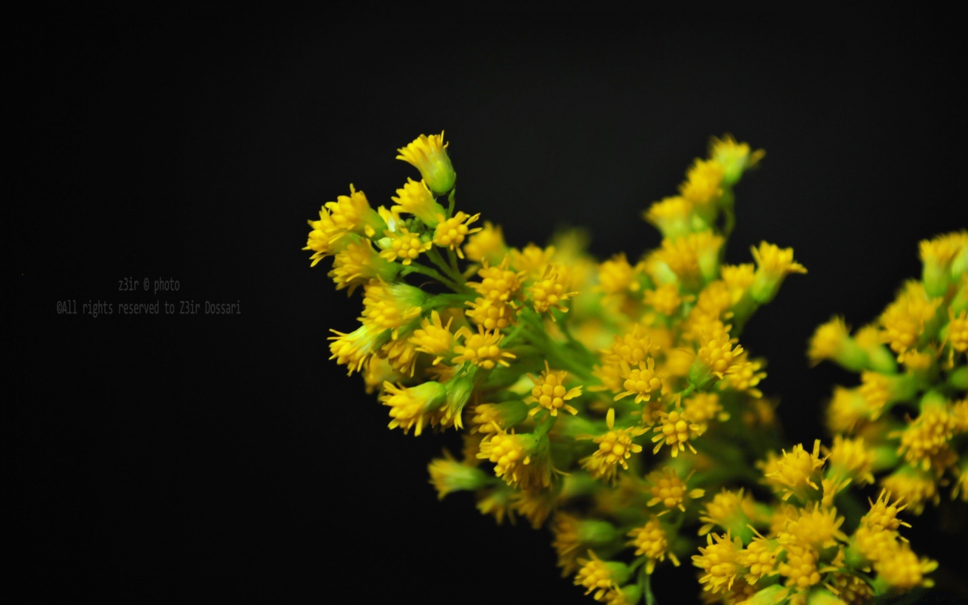 Mimoza'nın siyah bir arka plana karşı bahar uyanışı