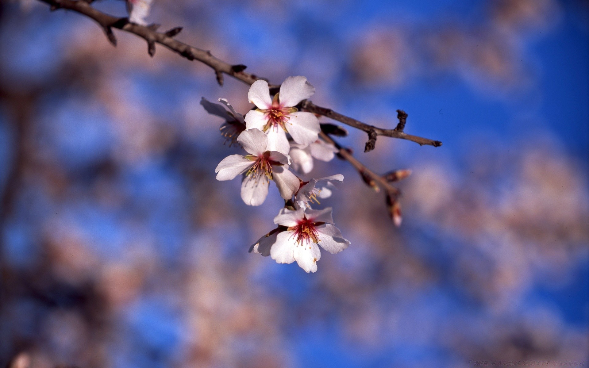Mavi gökyüzüne karşı kiraz çiçekleri