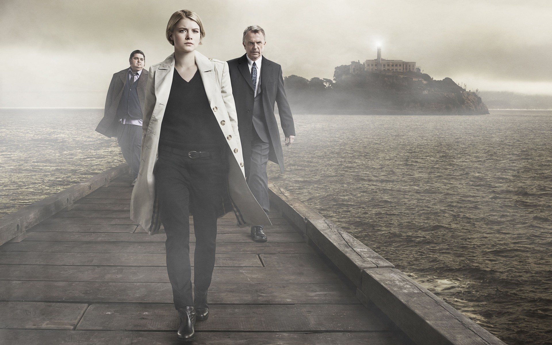 Büyük taşların arasında sisli deniz