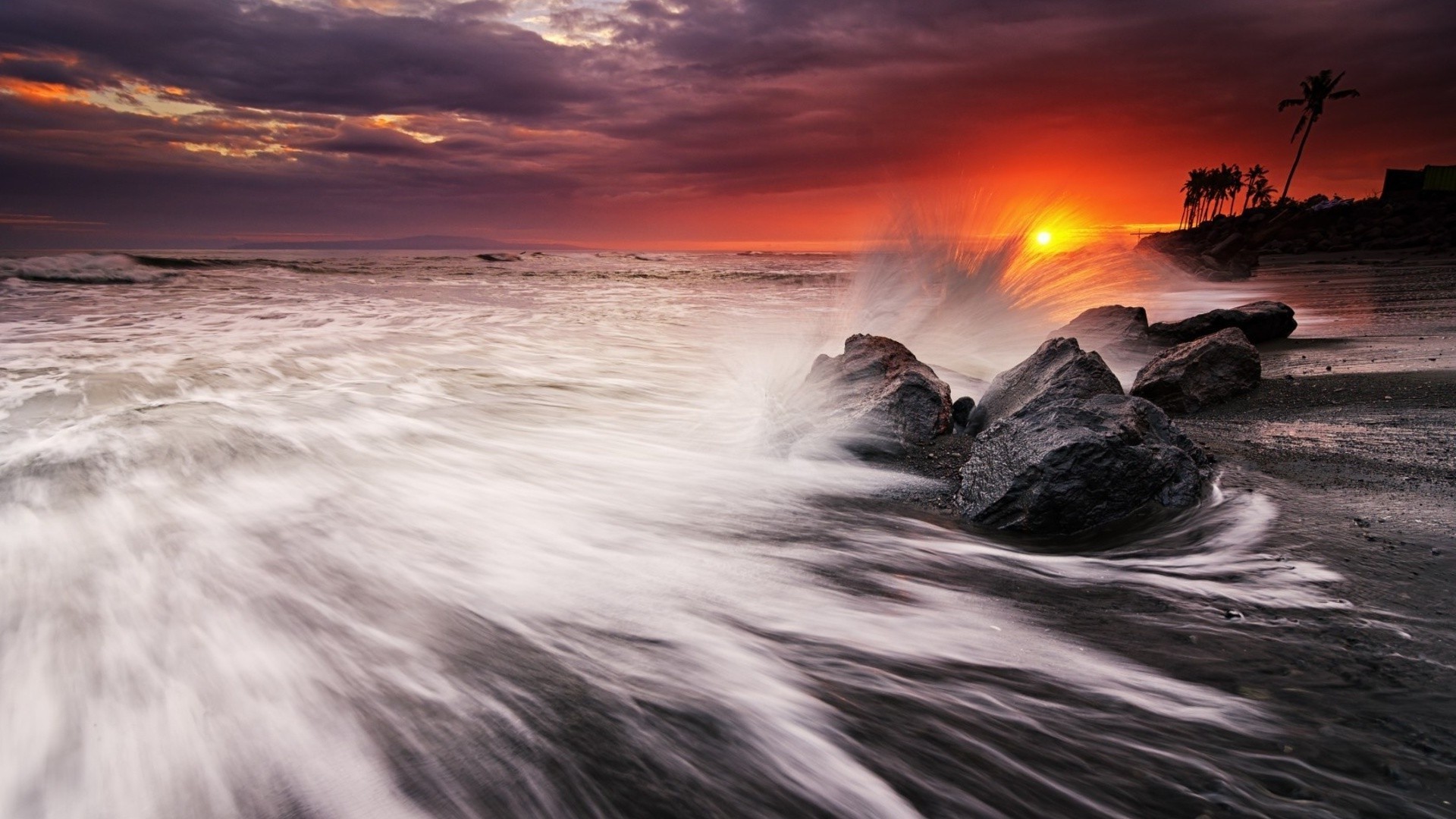 Deniz günbatımı plaj dalgası