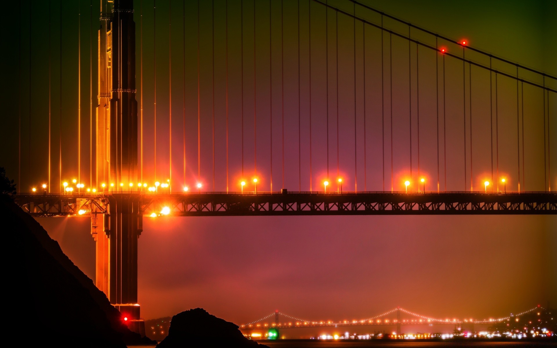 Gece şehri. Güzel aydınlatma. Sudaki yansıma