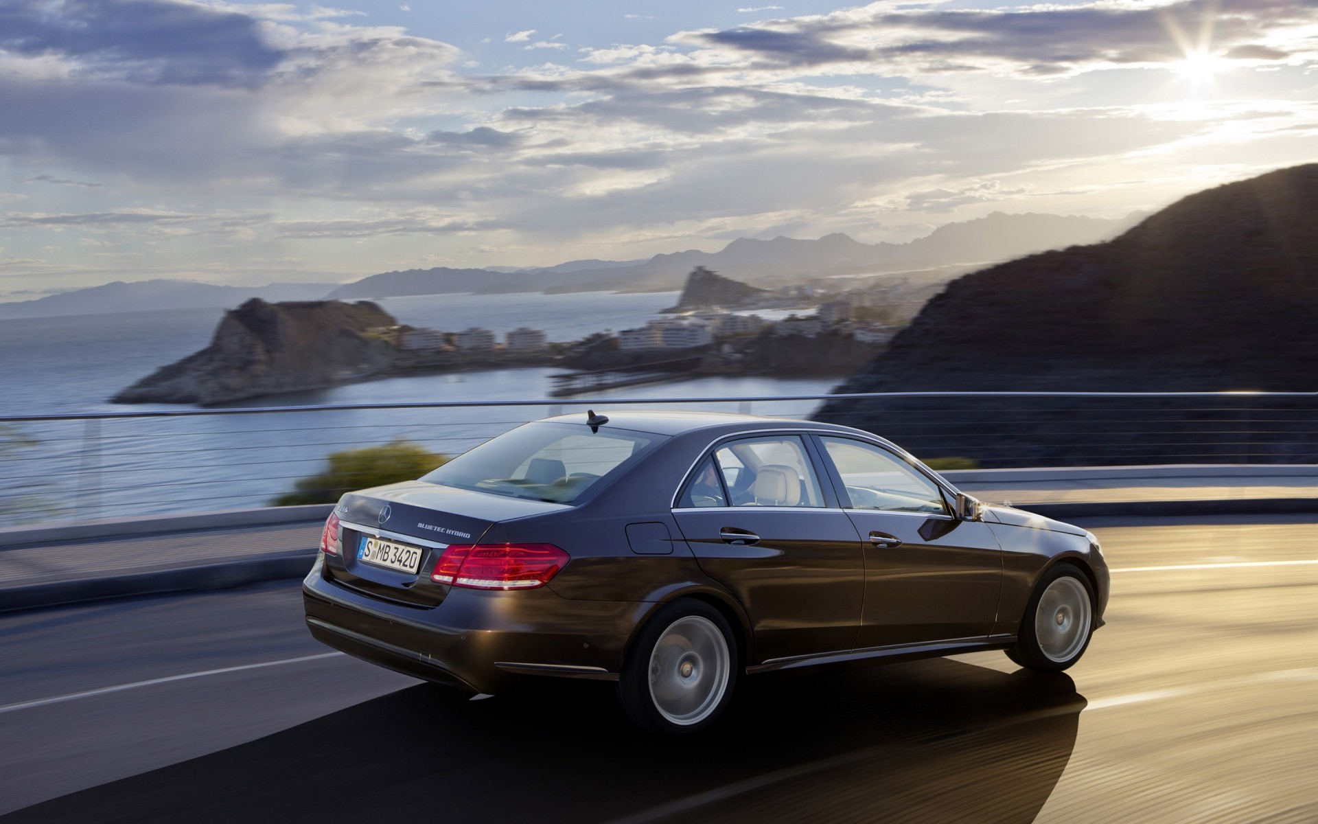 Mercedes benz, yeşilliklerle kaplı ekili bir yolda