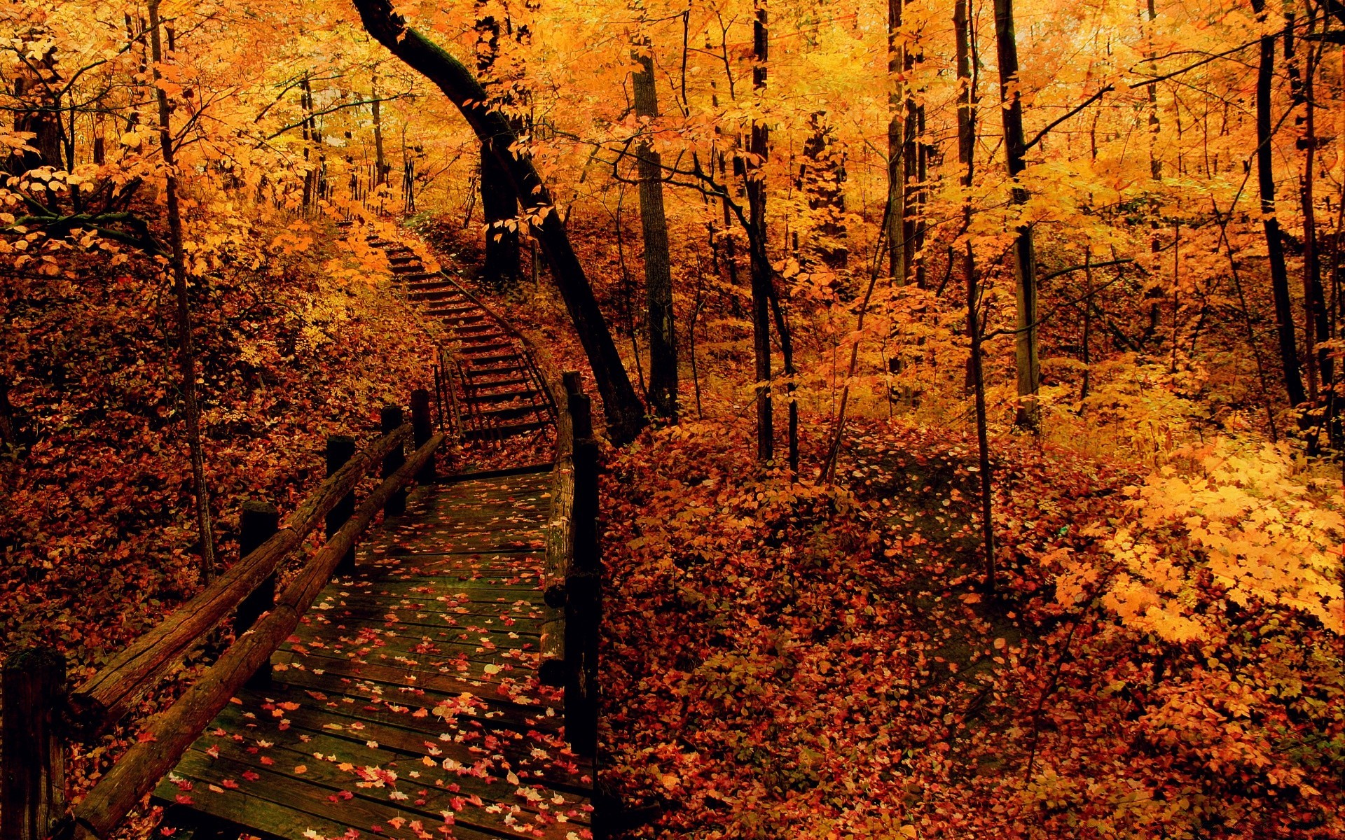 Ağaçlar ve düşmüş yaprakları olan sonbahar manzarası