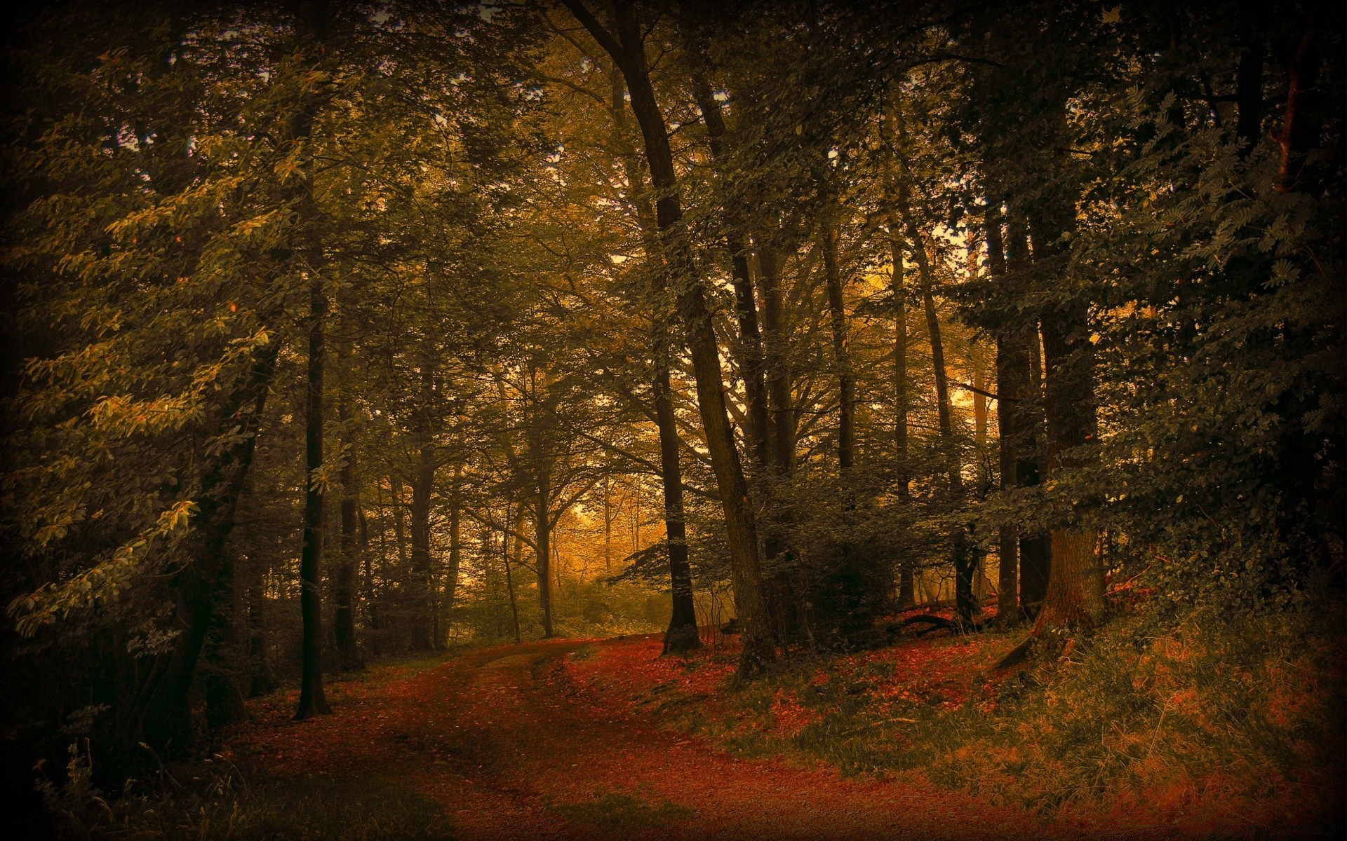 Sisli sonbahar ormanı ve ağaçları
