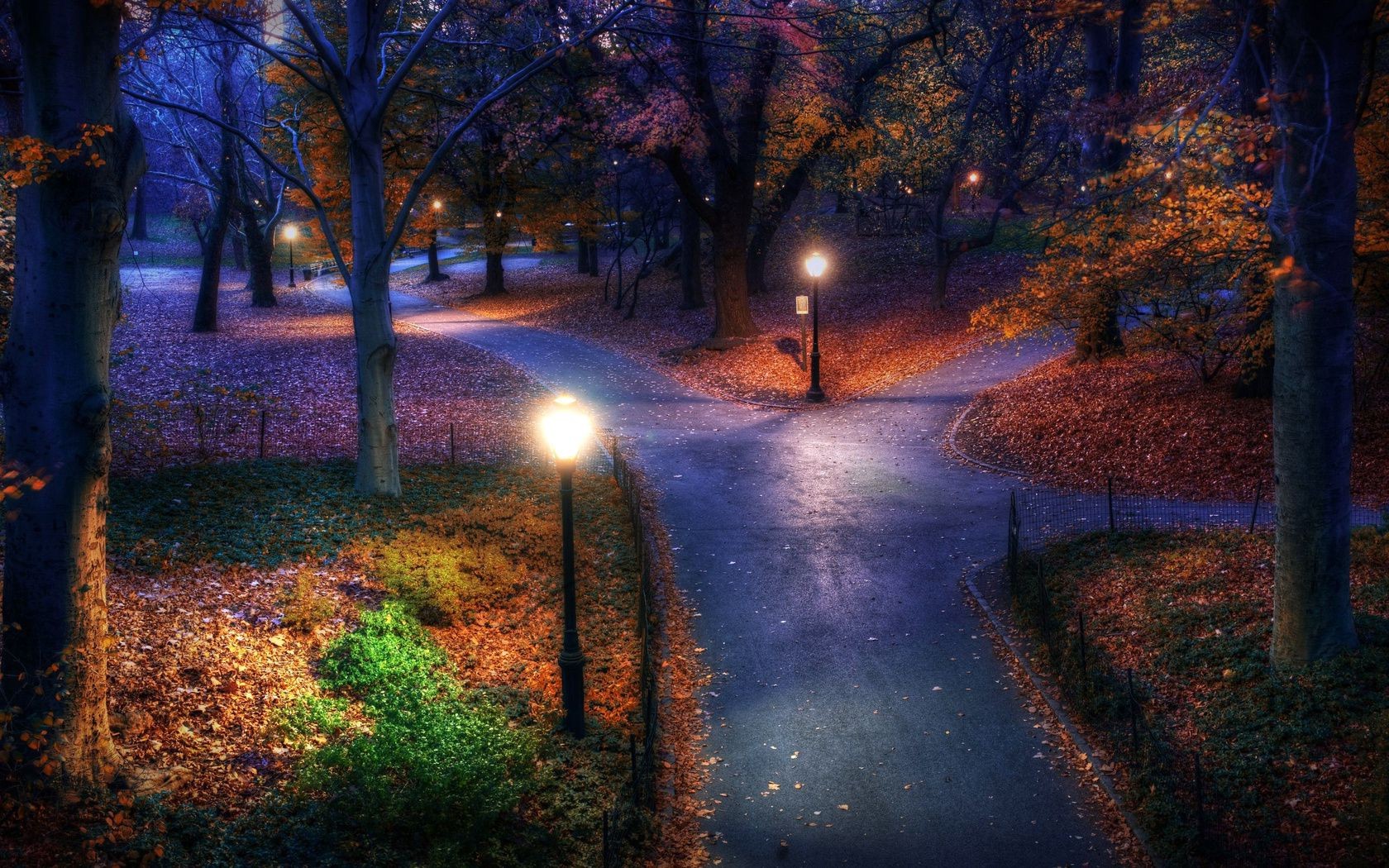 Turuncu yapraklı sonbahar pisti doğa manzarası
