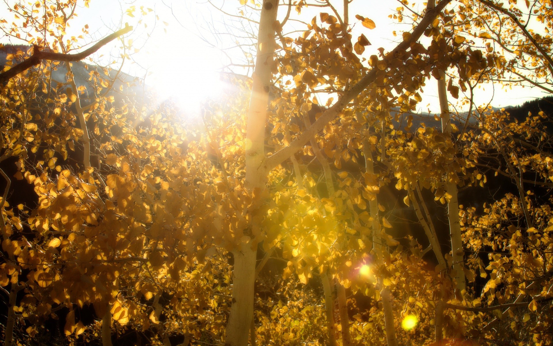 Sonbahar yapraklarının merceğinden güneş ışığı