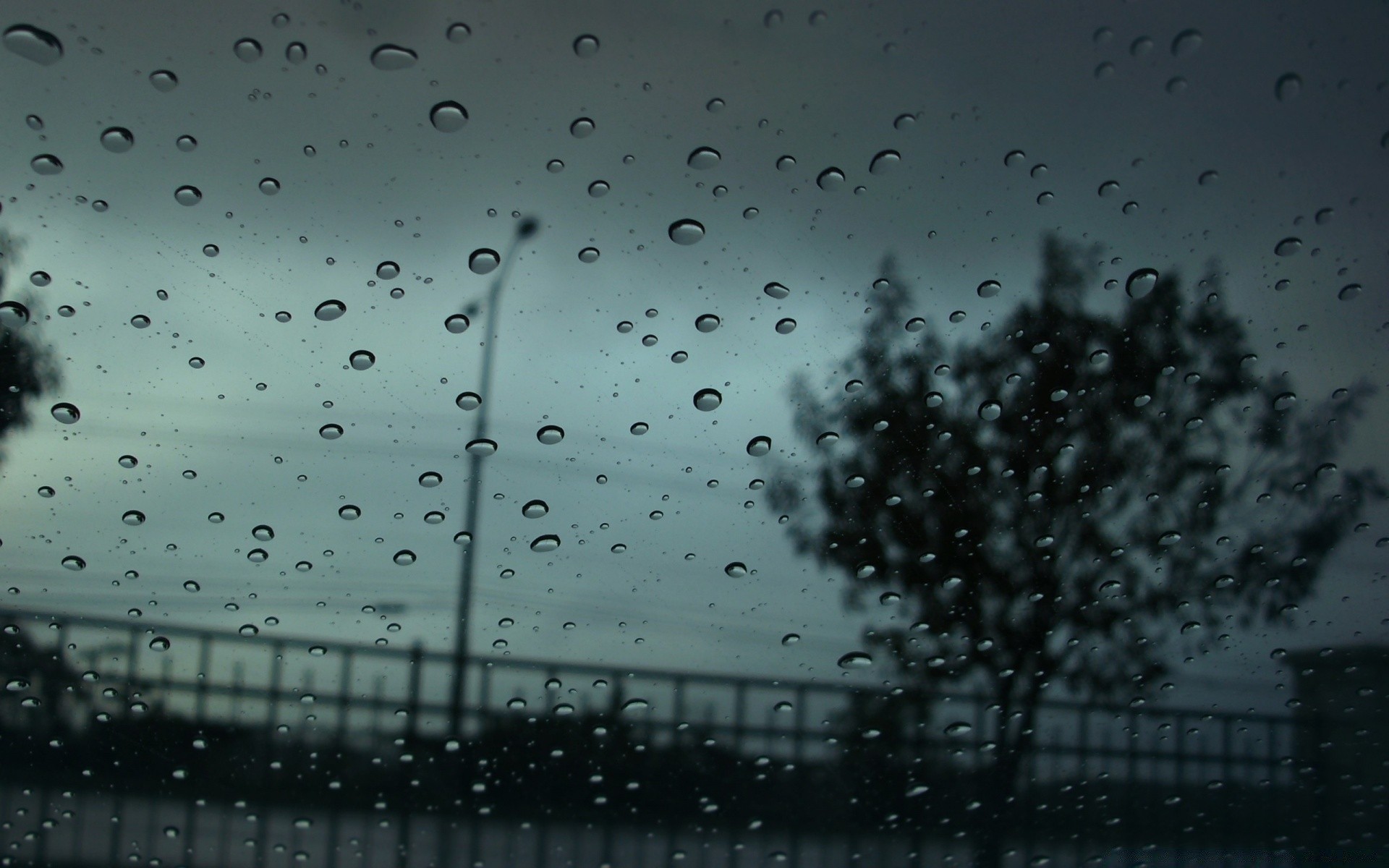 Sonbahar yağmurunun ıslak damlacıklarının düşmesi