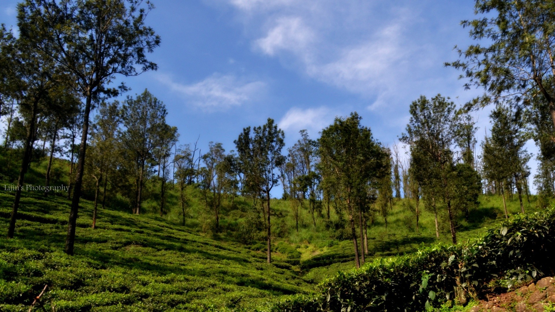 Temiz gökyüzünün arka planına karşı yeşil ağaçlar