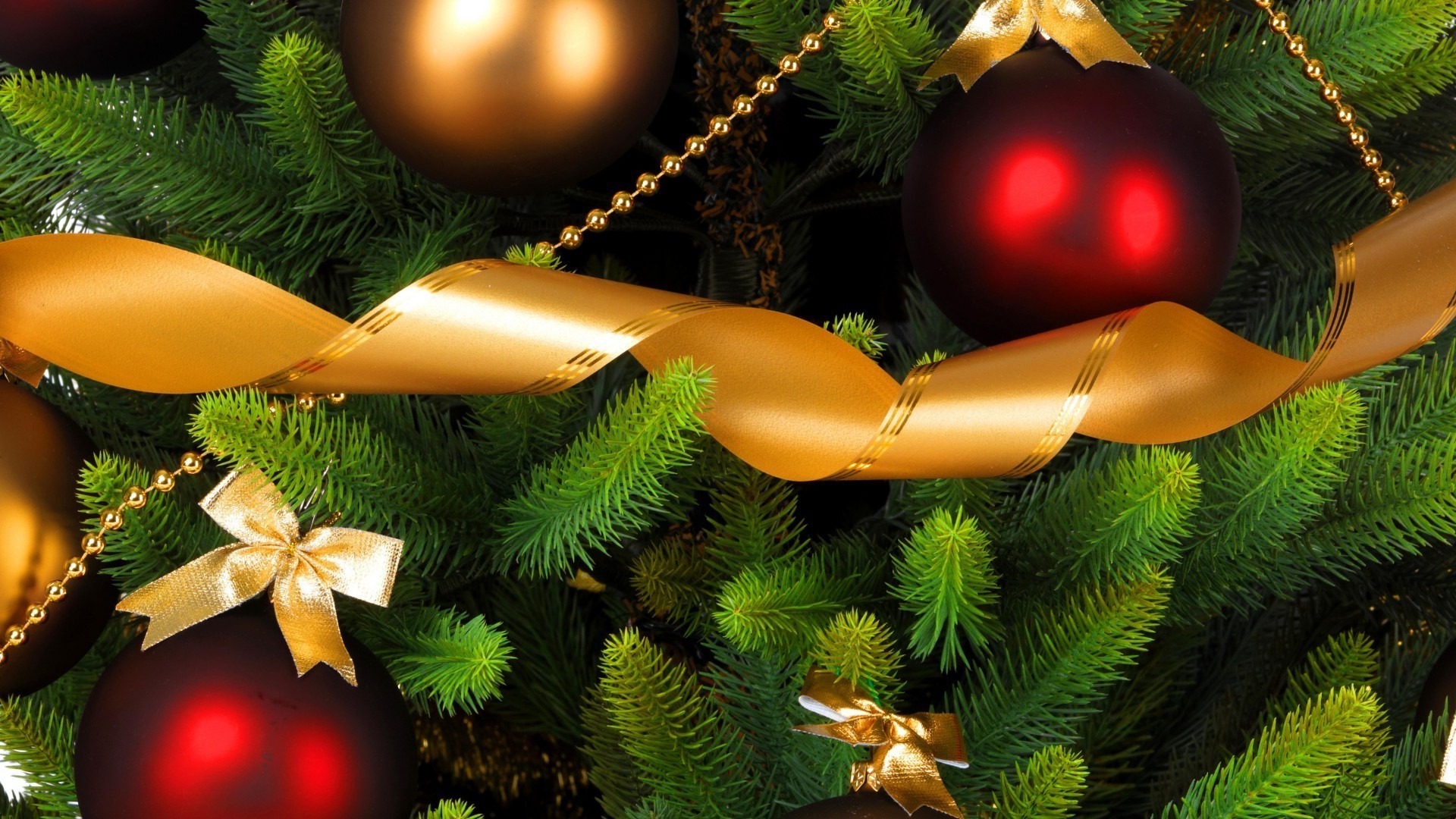 Kış masalı. Yılbaşı. Köknar ağacı, mücevherler. Toplar