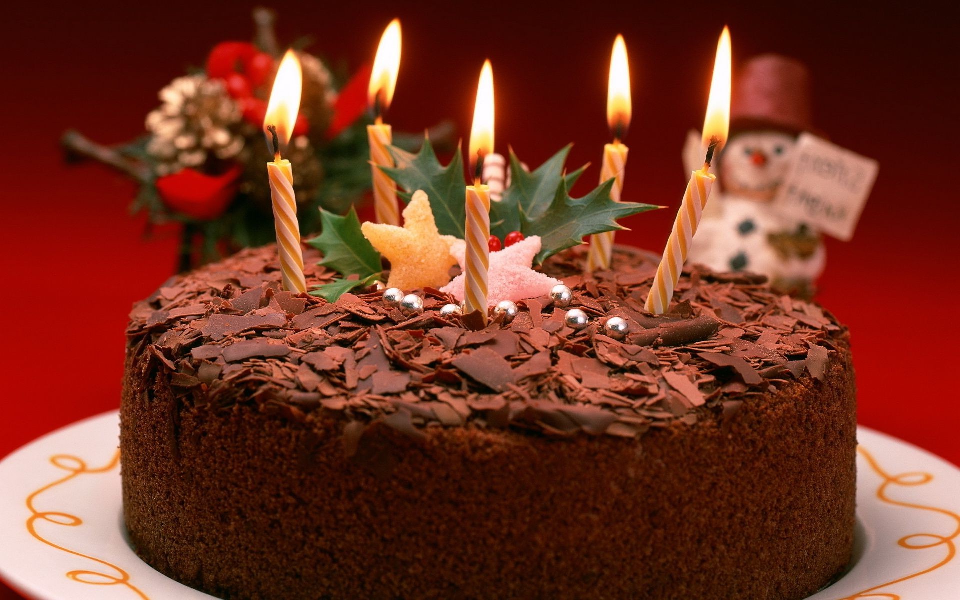 Beş mum ile doğum Günü Çikolatalı kek