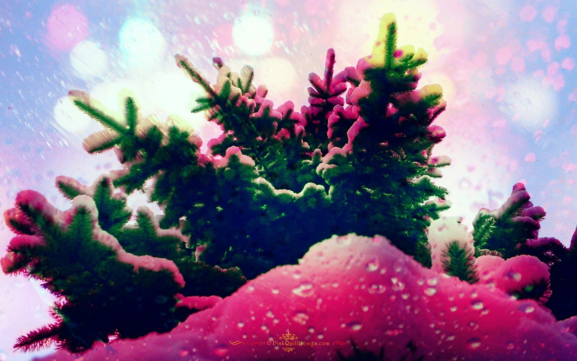 Beyaz kar üzerine boyanmış bir Noel ağacı