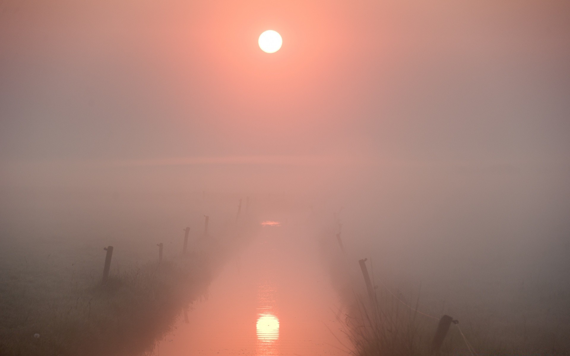Nehrin üstündeki sisli şafak, güzel pembe şafak