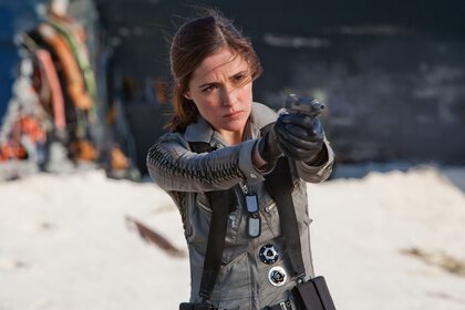 Tehlikeli bir durum, bir kadın silahı yönlendiriyor