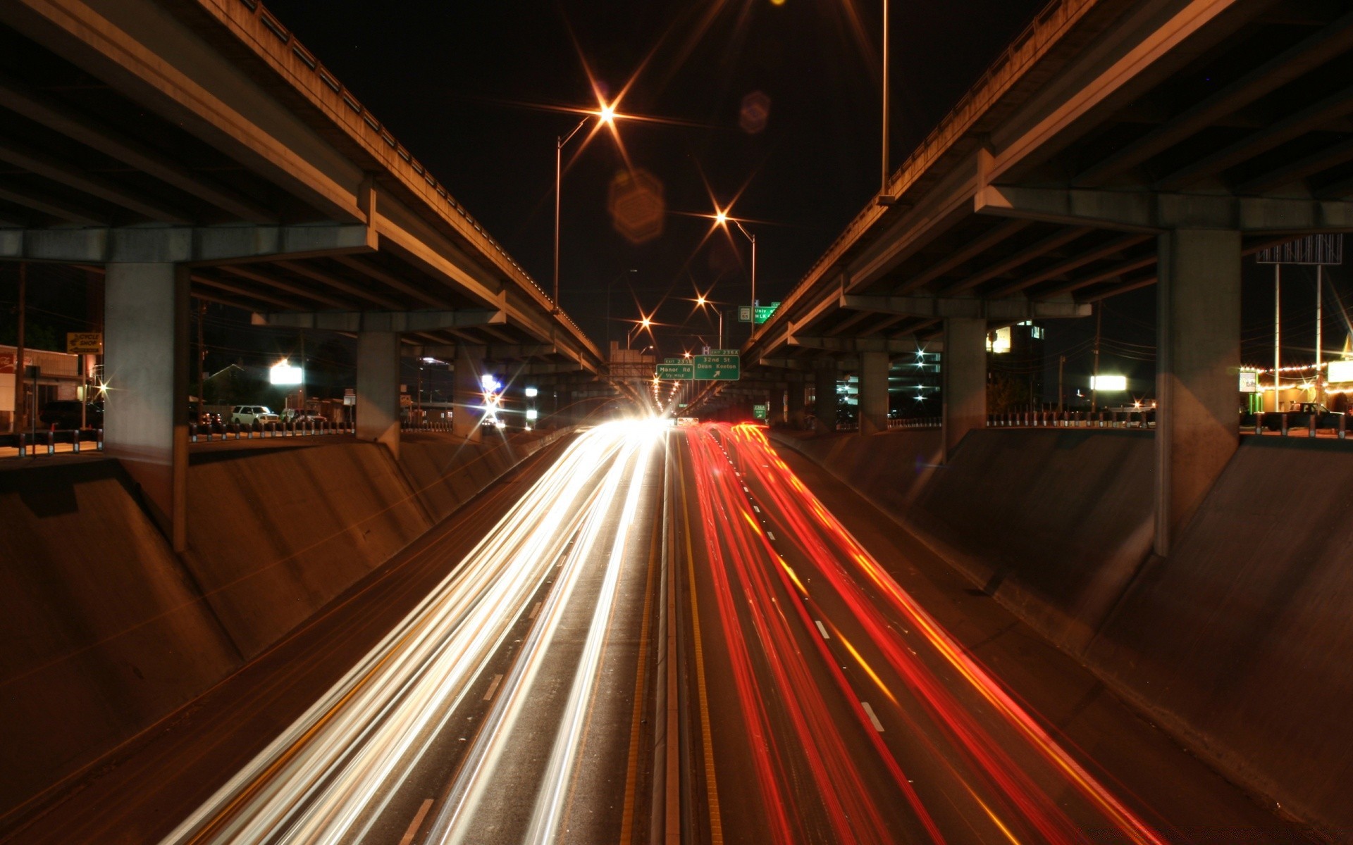 Gece gökyüzünün arka planında gece otoyolunun fotoğrafı