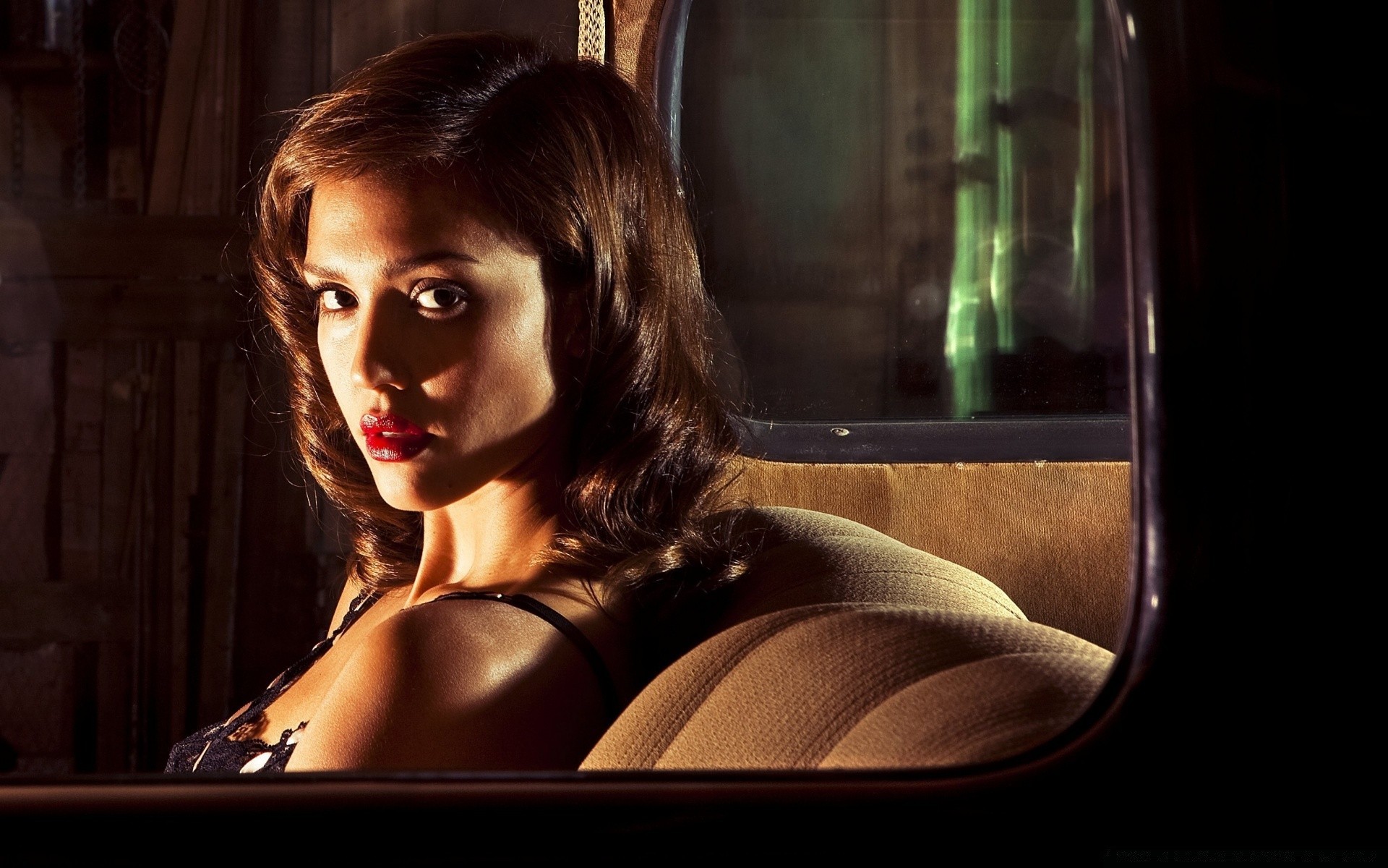 Güzel aktris kalıntıların arka planına karşı poz veriyor