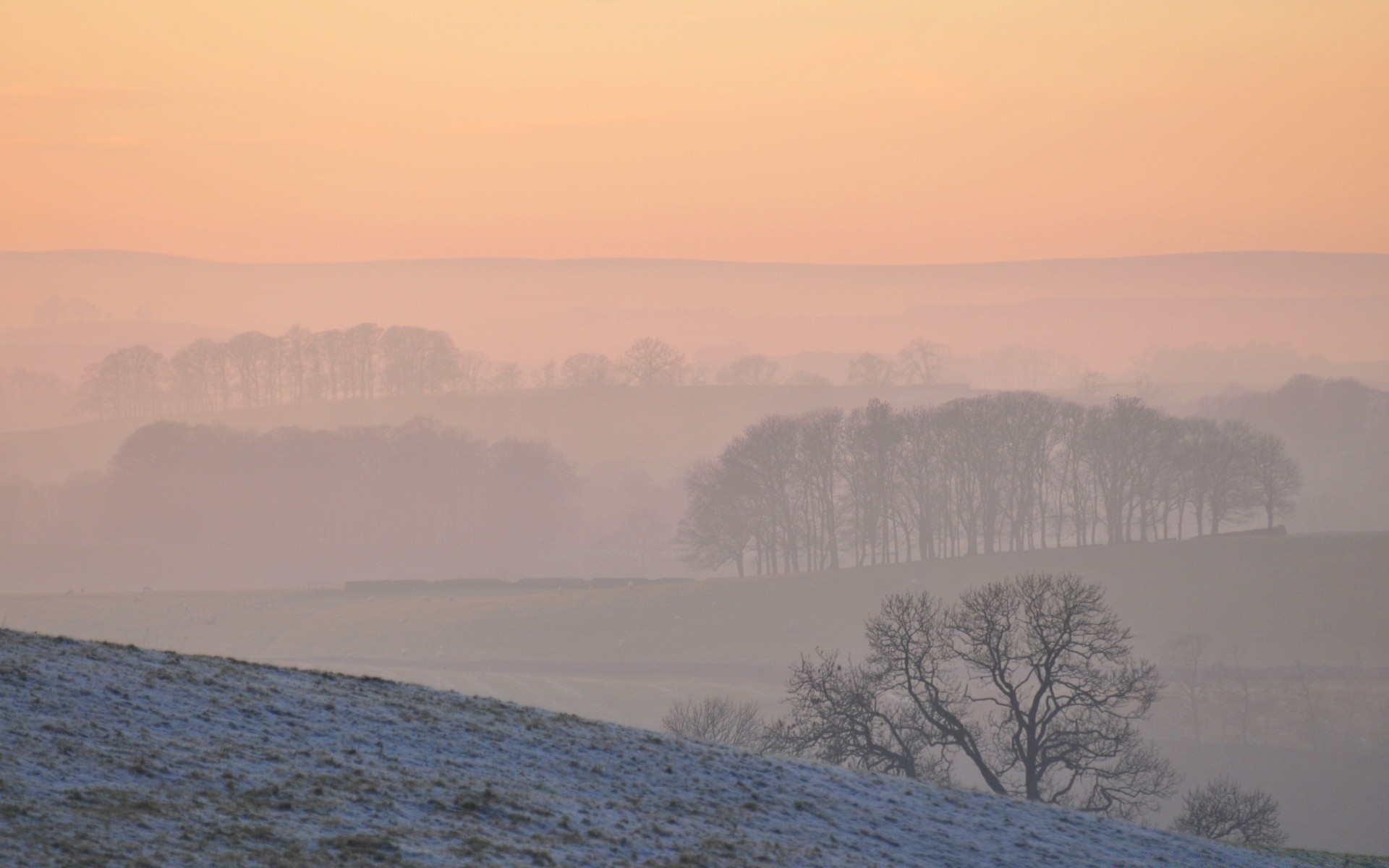 Manzara. Ormanın arka planında karla kaplı bir alan