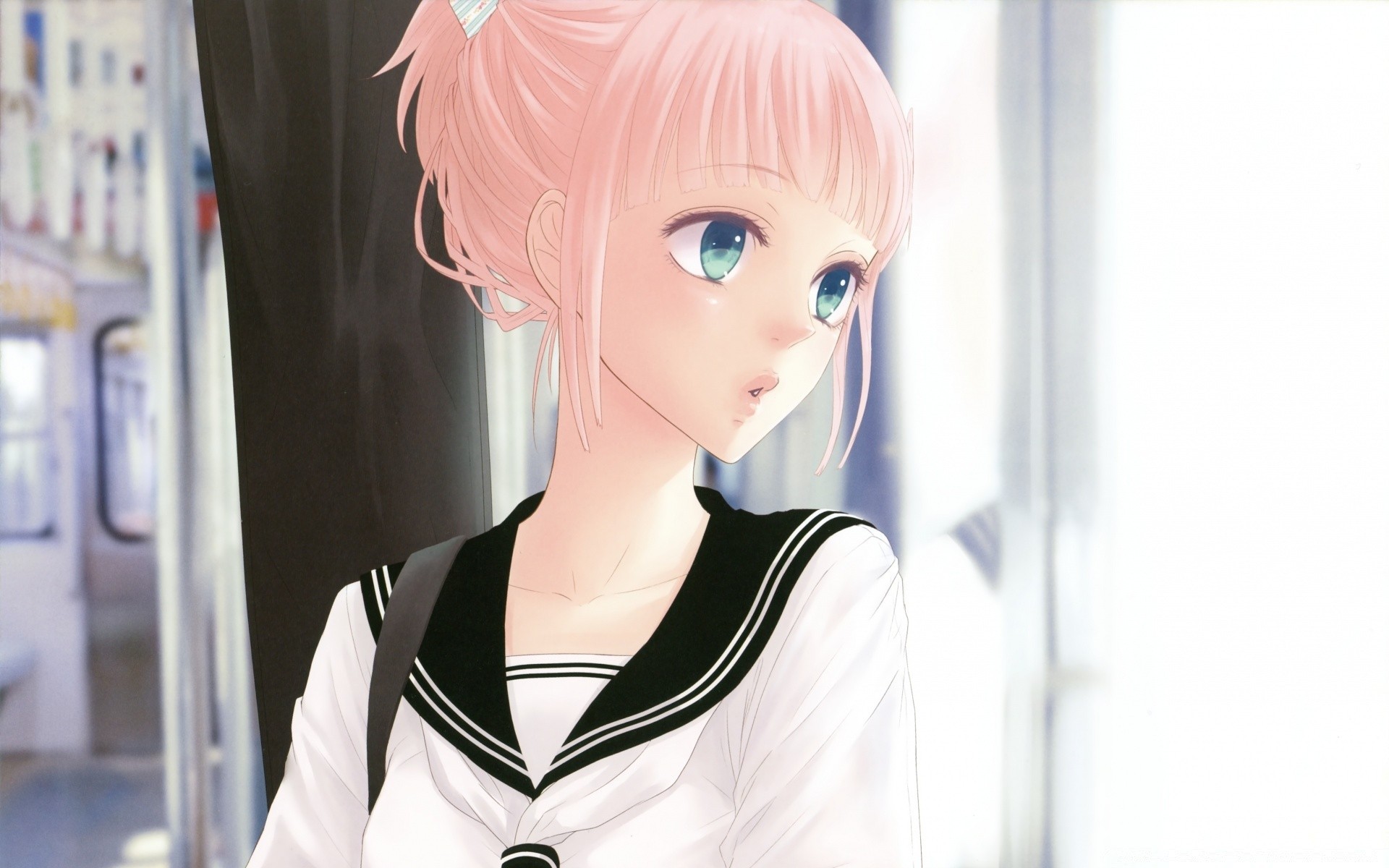 Pembe elbiseli kız uzanıyor ve anime'ye uzanıyor
