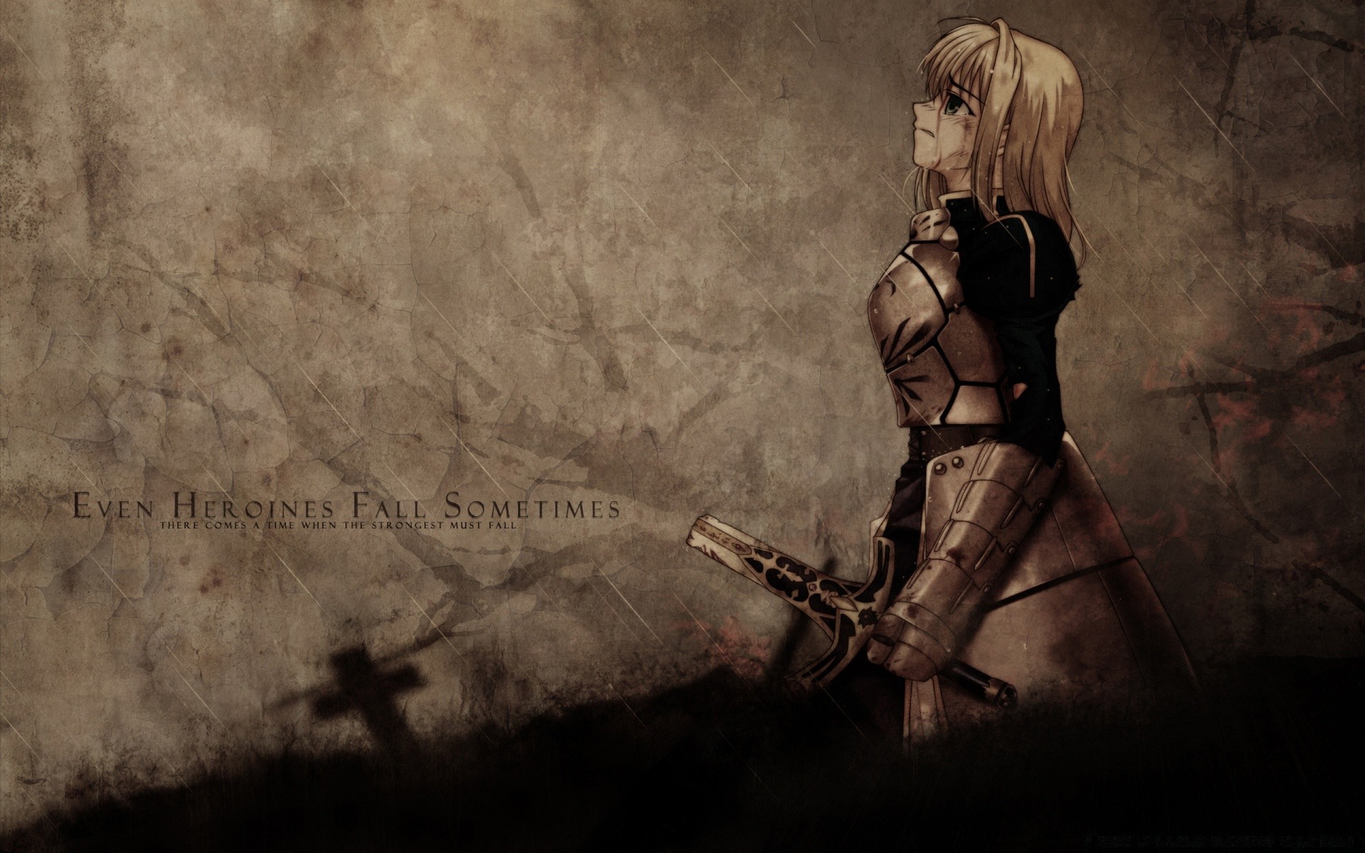 Anime kızı elinde kılıç tutarken ağlıyor