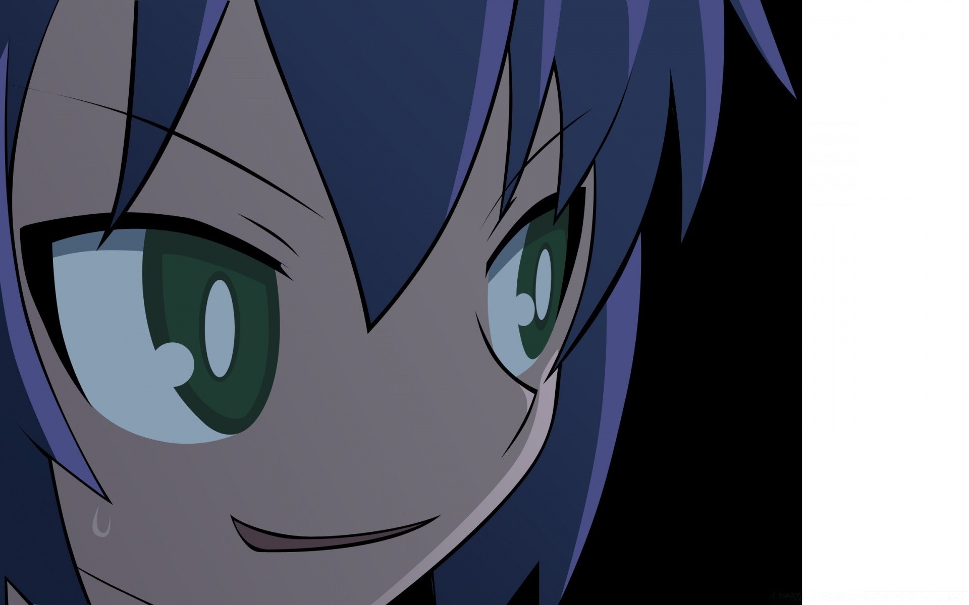 Gökyüzünün arka planına karşı mavi takım elbiseli mavi saçlı anime karakterleri