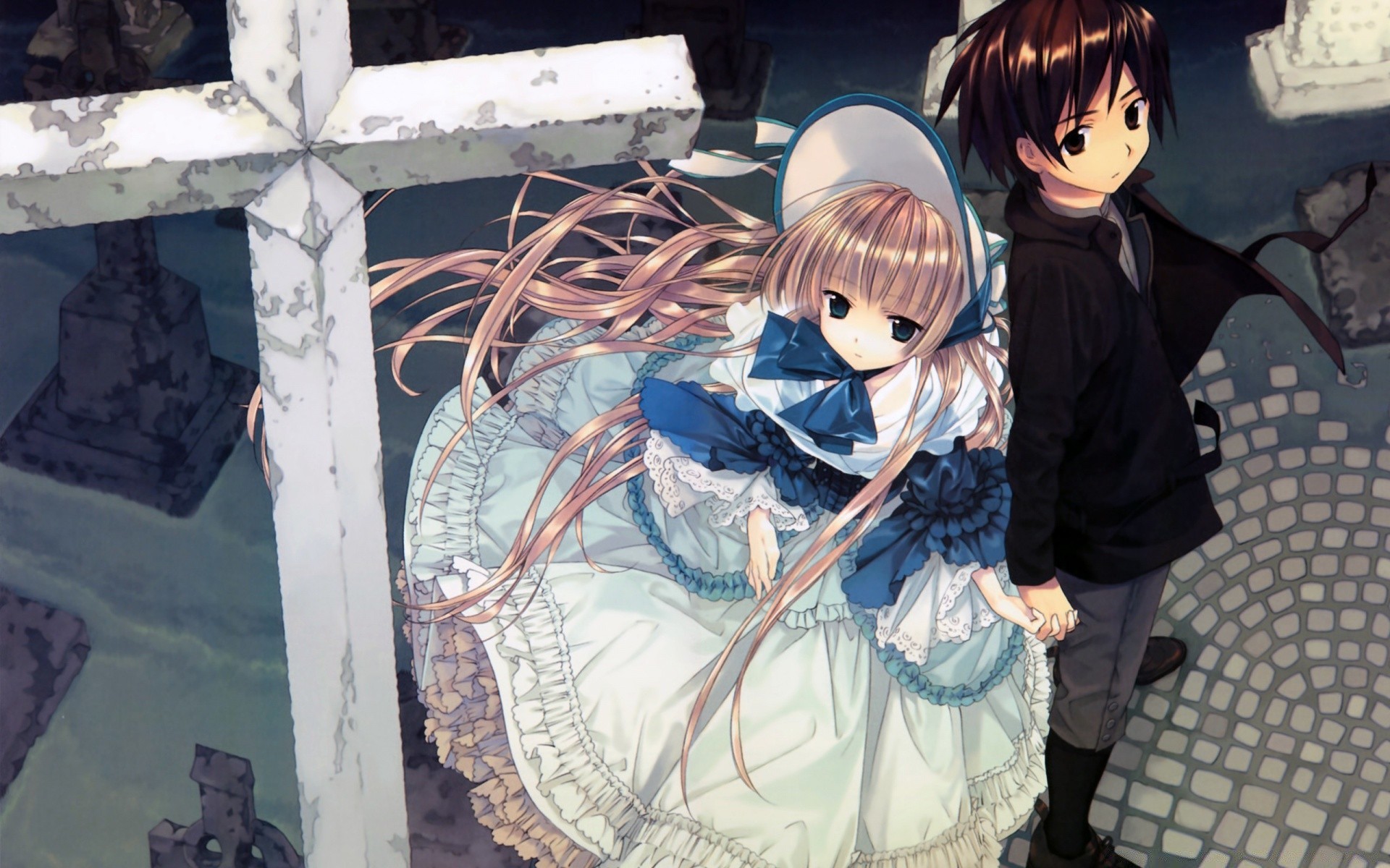 Pembe elbiseli kız uzanıyor ve anime'ye uzanıyor