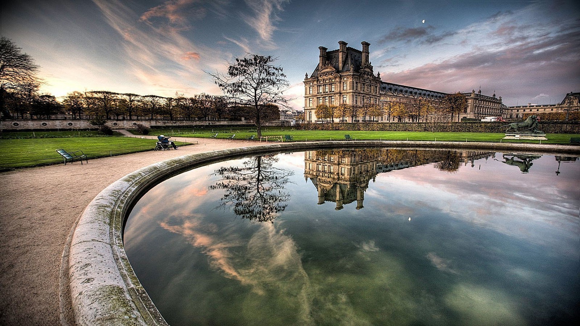 Mor gökyüzünün arka planına karşı antik kalıntılar