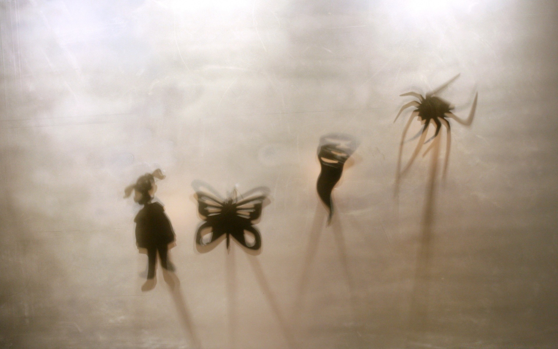 Gri-kahverengi bir arka plan üzerinde böceklerin gölgeleri