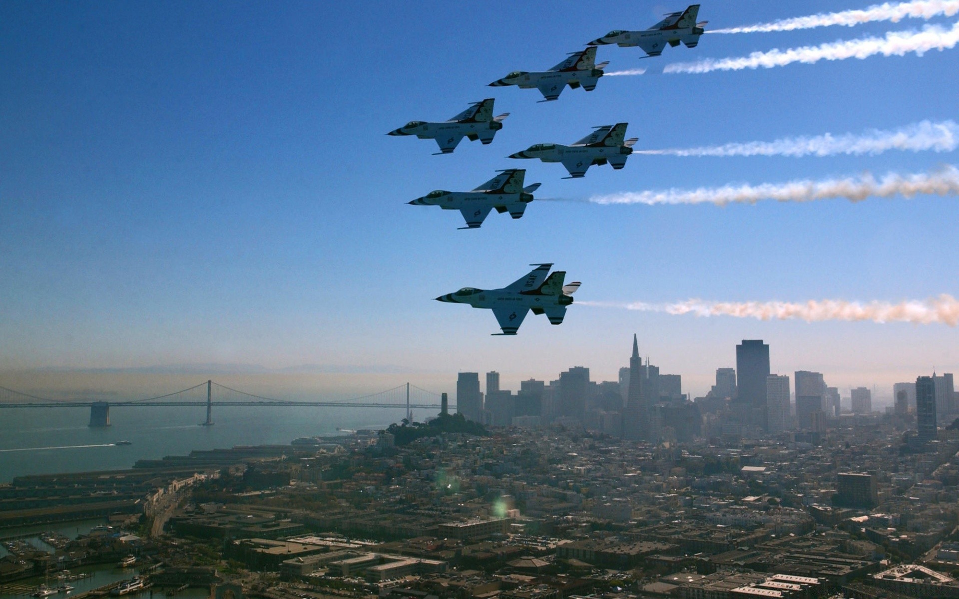 Şehrin yukarısındaki gökyüzünde askeri filo