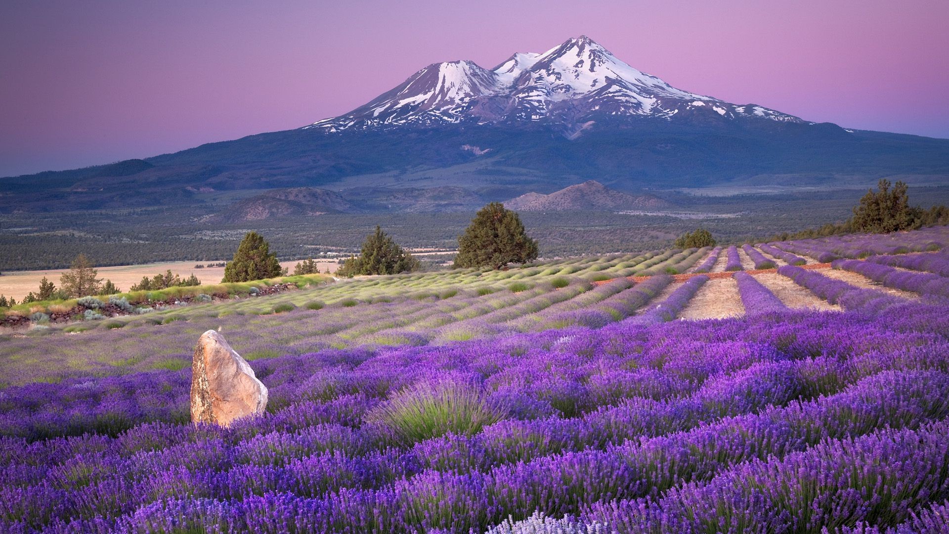 Pembemsi bir gün batımı ile dağın manzarası