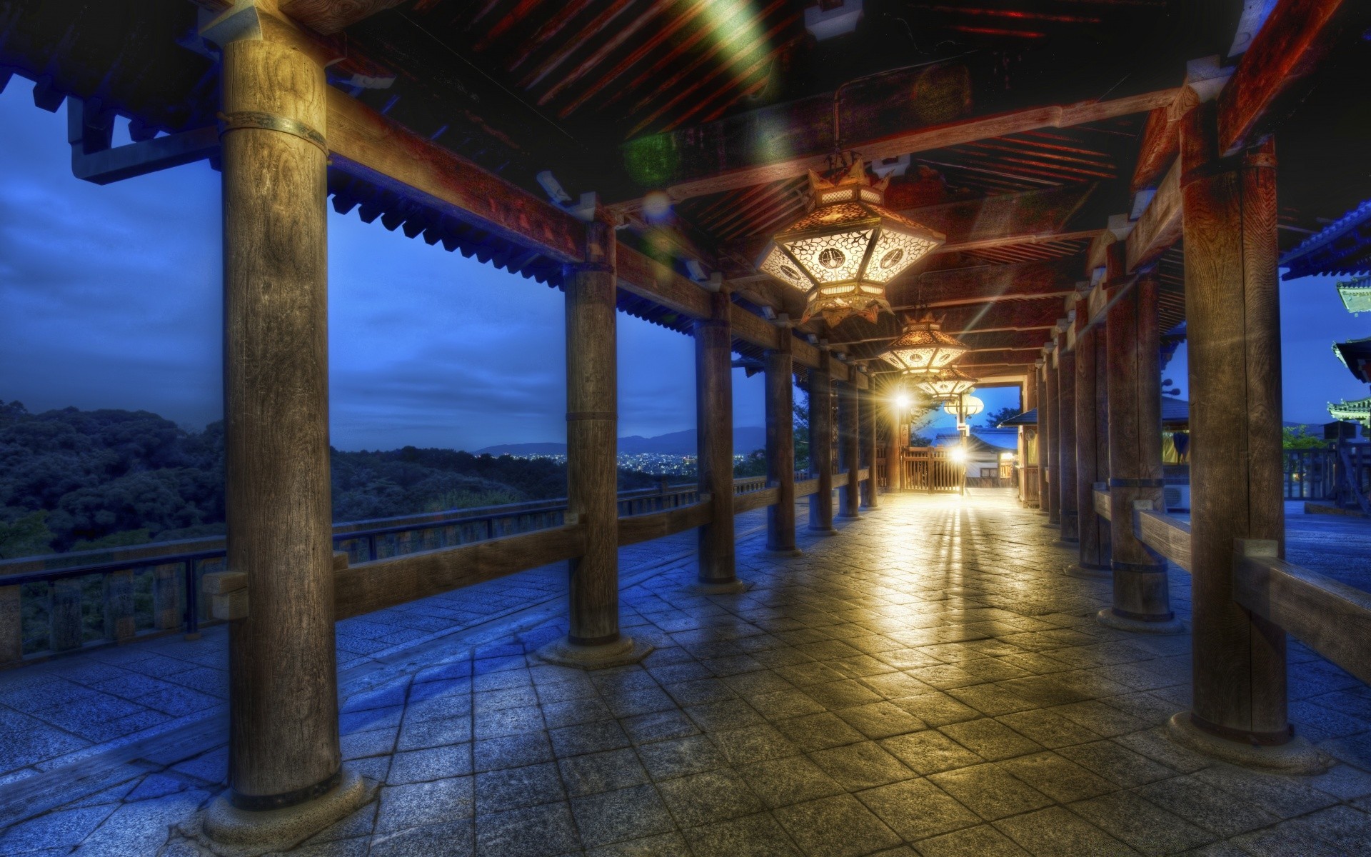 Mavi projektörlerin ışığında kentsel gökdelenler